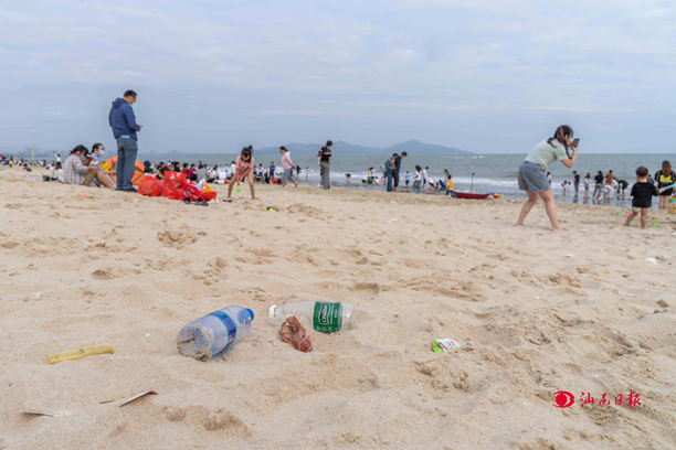 五一”期間,記者在保利金町灣發(fā)現(xiàn)不少垃圾丟棄在海灘,呼吁市民文明旅游,愛護環(huán)境。