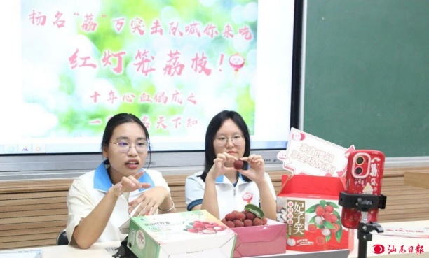 華南師范大學(xué)揚(yáng)名“荔”萬突擊隊(duì)為東涌鎮(zhèn)寶樓村紅燈籠荔枝直播帶貨。