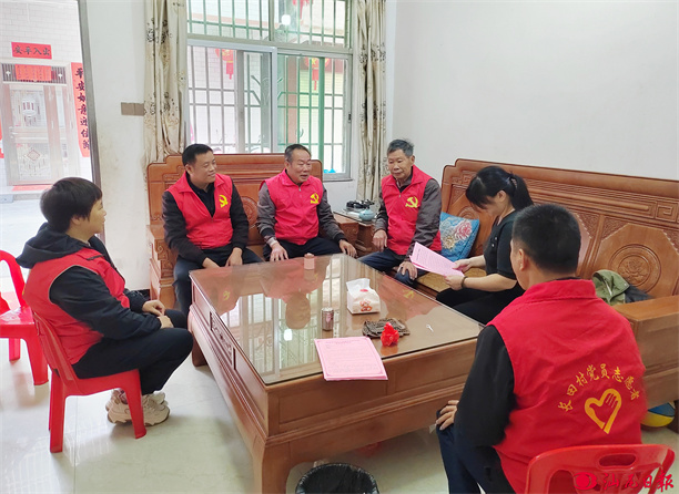南萬(wàn)鎮(zhèn)黨員干部入戶宣傳綠美生態(tài)建設(shè),動(dòng)員群眾一起參與植樹(shù)活動(dòng)。