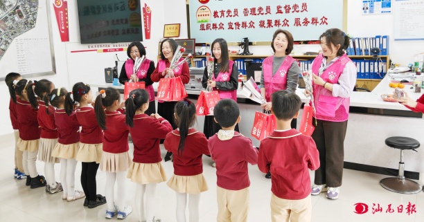 孩子們不僅是祝福的傳遞者,更是黨群連心的見(jiàn)證者。在老師的引導(dǎo)下,他們圍坐一圈,聆聽(tīng)社區(qū)女性工作者的服務(wù)故事:走訪獨(dú)居的老奶奶、調(diào)解鄰里糾紛、宣傳惠民政策、推進(jìn)家風(fēng)建設(shè)……一個(gè)個(gè)平凡卻閃光的瞬間,在孩子們心中悄然種下了尊重女性、感恩奉獻(xiàn)、向黨員看齊的種子。