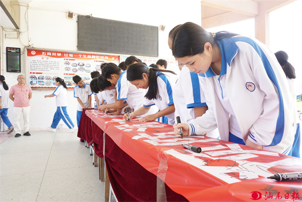 張靜中學(xué)學(xué)生在“預(yù)防溺水 珍愛生命”橫幅上鄭重簽名。