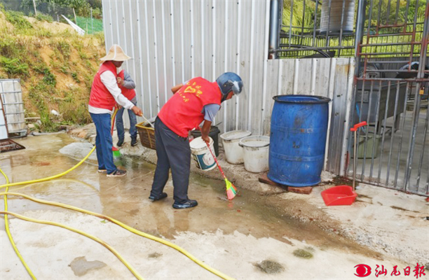 志愿者在門(mén)前屋后清洗公用場(chǎng)地。