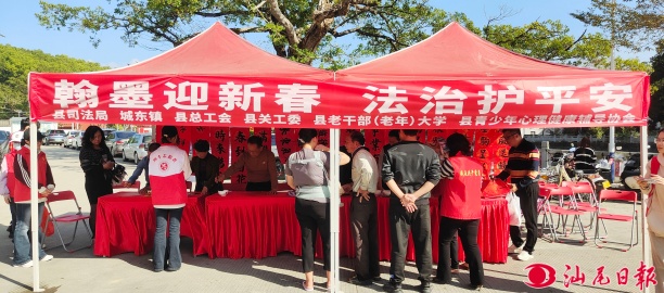 每近新春寫(xiě)春聯(lián)是海陸豐的年味,也是風(fēng)俗之一。近日,海豐縣司法局等單位組織一批書(shū)法家送春聯(lián)到海豐縣城東鎮(zhèn)赤山村,這是對(duì)風(fēng)俗的傳承。 沈綠洋 攝