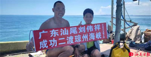 在劉偉祥的記憶里,首渡瓊州海峽成功后,他的心情并非是歡呼雀躍的,而是圓夢后的平復(fù)、放松,并且開始設(shè)想自己第二次、第三次橫渡,于是在今年,他二渡瓊州海峽的消息遍布各大媒體,問及感受與首渡有何不同,他說:“這次我是很有信心,胸有成竹,續(xù)夢成功!”