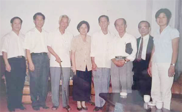 1998年10月16日,時任省教育廳廳長江海燕(左四)來??疾欤瑫姸聲糠殖蓡T(資料圖)。