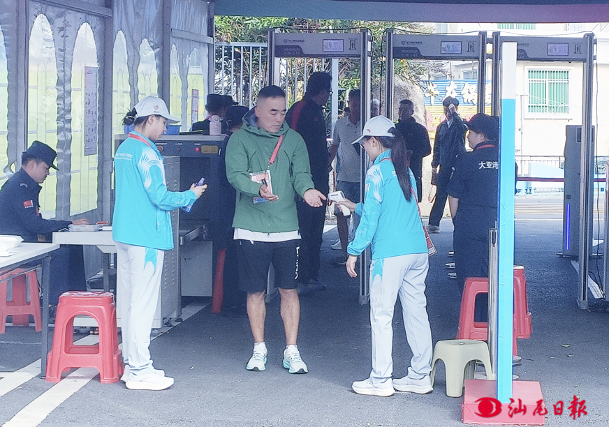 志愿者協(xié)助賽事相關(guān)人員過安檢。