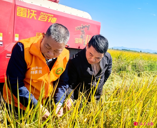“受臺風(fēng)影響,初期畝產(chǎn)約800斤,但通過科學(xué)干預(yù),后期長勢越來越好,部分地塊突破1100斤!”黃勝展興奮地補(bǔ)充道。
