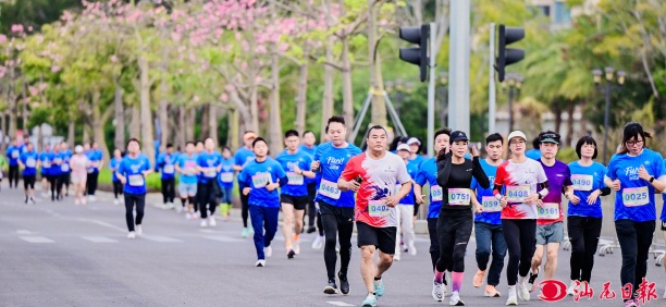歡樂跑選手們的身影與品清湖畔的蔥蘢綠意、爛漫花海交織成一幅充滿活力的城市畫卷。