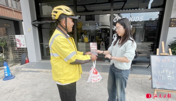 “美團騎手”向顧客送餐時派發(fā)防火宣傳小冊子。