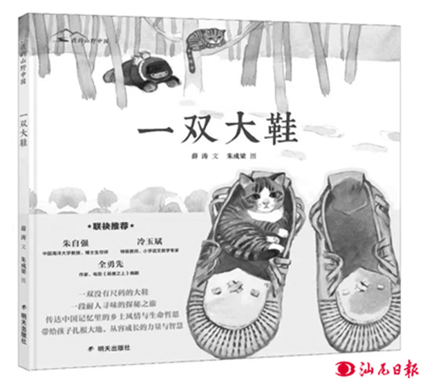 值得一提的是,《一雙大鞋》是明天出版社“我的山野中國(guó)”圖畫(huà)書(shū)系列之一,單從這本書(shū)來(lái)看,“我的山野中國(guó)”圖畫(huà)書(shū)系列不僅在自然的山野,與之相連的更有生活的山野與心靈的山野。當(dāng)下兒童的生活日益城市化,與自然世界存在諸多隔膜,那么在不太能回歸自然山野的大背景下,通過(guò)閱讀這些故事,通過(guò)品味故事里的人生,多增閱歷多長(zhǎng)見(jiàn)識(shí),領(lǐng)悟一些關(guān)于山野的生活智慧,在心靈之中葆有山野的清新靈動(dòng),終究是一件幸福的事情。