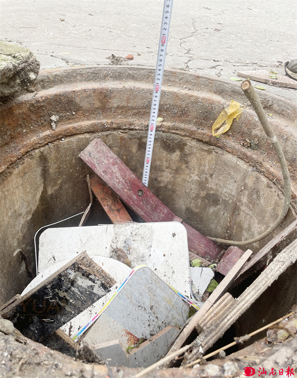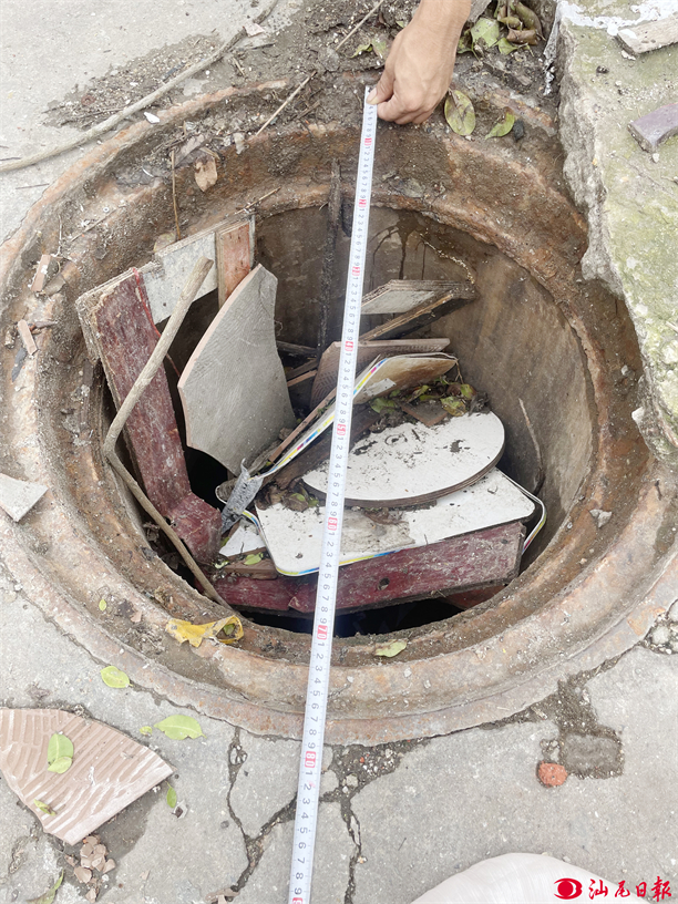 記者近日來到位于市區(qū)和順村(市公安局森林分局)附近的小巷,實地察看了這一沙井。記者掀起木板,看到沙井直徑約為70厘米,十分醒目。更令人擔憂的是,沙井深度已經超過130厘米,井內積滿了生活垃圾,儼然成了一個“垃圾井”。為了安全起見,周圍熱心市民暫時在井口放置一些破舊的木條和支架作為警示標志,但由于沒有井蓋且沙井位于道路中間,如果不及時處理,后果不堪設想。