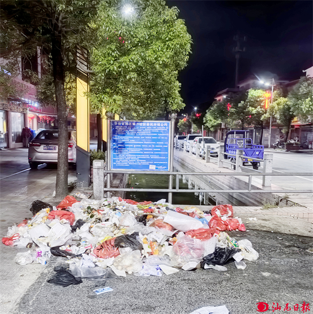 華興路華僑管理區(qū)第二社區(qū)居民環(huán)境公約警示牌旁堆滿垃圾。