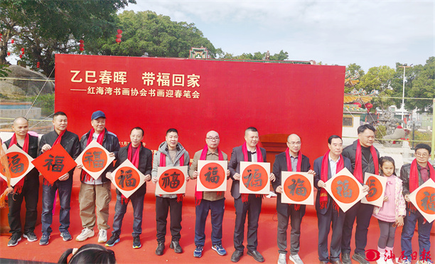 據(jù)了解,今年聯(lián)合國(guó)把中國(guó)的春節(jié)列入世界文化遺產(chǎn),在中國(guó)傳統(tǒng)節(jié)日春節(jié)申遺成功之際,為進(jìn)一步弘揚(yáng)中華優(yōu)秀傳統(tǒng)文化,由紅海灣書畫協(xié)會(huì)、東洲法王宮理事會(huì)主辦這次迎春送福書畫筆會(huì),旨在展示我市紅海灣開發(fā)區(qū)書畫家對(duì)中國(guó)文化的認(rèn)同、對(duì)中國(guó)文化的自信,以文化自覺匯聚成民俗、民心、民意,一幅幅書畫作品也給春節(jié)暖冬帶來(lái)濃濃的新春祝福。