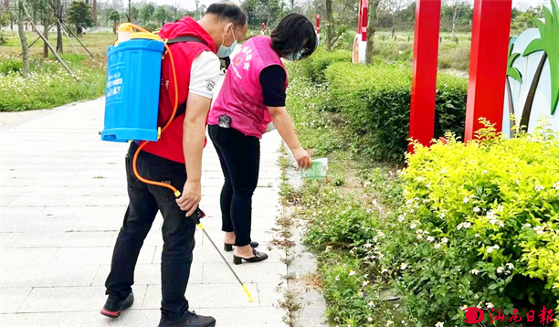 工作人員對轄區(qū)綠化帶進(jìn)行全面消殺。