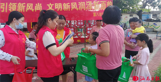 志愿者在第八社區(qū)僑安里村頭小公園開展移風(fēng)易俗宣傳活動(dòng)。