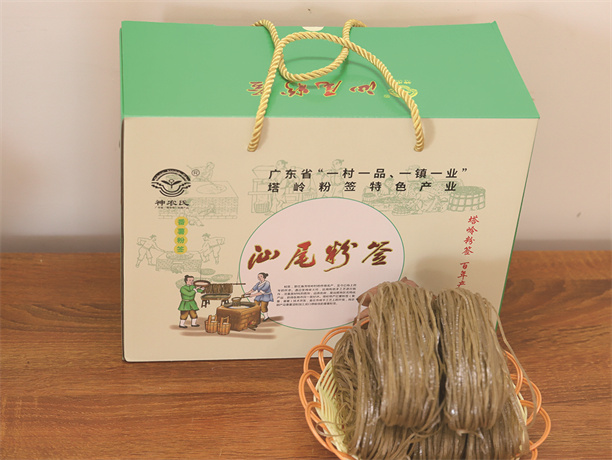 番薯粉絲,又稱粉簽,是汕尾紅海灣塔嶺村的傳統(tǒng)名產(chǎn),至今已有上百年的歷史。汕尾紅海灣石狼山種養(yǎng)專業(yè)合作社憑借旗下的核心品牌產(chǎn)品“塔嶺準(zhǔn)簽”地道的口感與匠心工藝,被認(rèn)定為第二批“汕尾老字號(hào)”。
