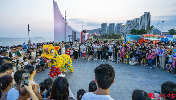此外,城區(qū)還在市區(qū)二馬路口舉辦“樂享民俗踏浪放歌”路演活動、在保利金町灣舉辦“金町灣美食音樂節(jié)”,本土流行歌手、搖滾歌手、民俗歌手、漁歌表演隊等進(jìn)行現(xiàn)場互動表演,讓游客在品嘗特色美食的同時享受本土特色音樂,一飽“口福、眼福、耳福”。