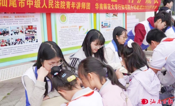 汕尾日?qǐng)?bào)訊 (記者 劉佳倫 通訊員 李勝浩 文/圖) 近日,汕尾中院青年講師團(tuán)聯(lián)合華南師范大學(xué)行知書(shū)院大學(xué)生志愿者,在汕尾市第二小學(xué)開(kāi)展“普法集市潤(rùn)童心,與法‘童’行護(hù)成長(zhǎng)”主題普法活動(dòng),將生動(dòng)的禁毒教育與趣味法治游戲送入校園,為全校學(xué)生送上了一場(chǎng)別開(kāi)生面的法治課。